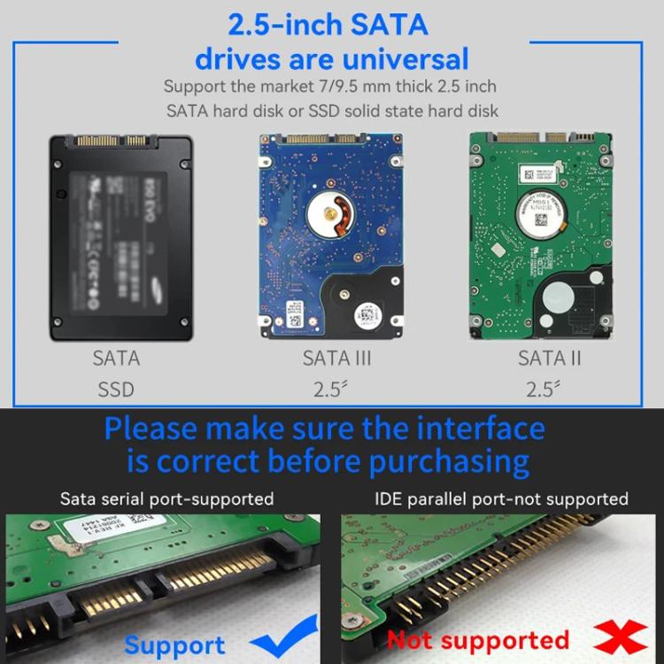 6. Support 7/9.5mm thick 2.5-inch SATA hard disk or SSD solid state drive