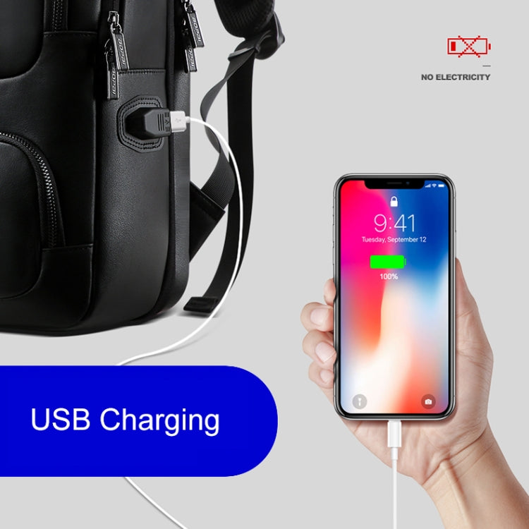 Bopai 851-023911 Top-grain Leather Business Breathable Anti-theft Man Backpack, Size: 28x18x42cm(Black)
