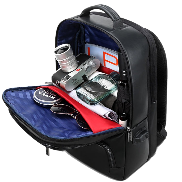 Bopai 851-024011 Top-grain Leather Business Breathable Anti-theft Man Backpack, Size: 28x18x42cm(Black)