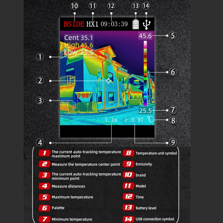 1. Infrared thermal camera can detect the temperature of the surface of the object, and the temperature distribution in the form of images of different colours, through the high-definition display screen display