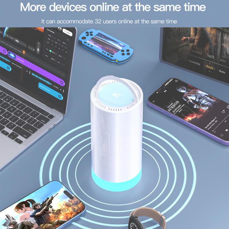 CAF902 4G CPE CAT7 SIM Card Router Colorful Camping Light Outdoor LTE Portable WiFi Hotspot, EU Plug(White)