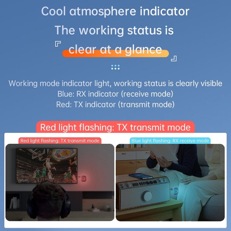 4. Receiving mode/transmitting mode: audio playback device connected to the speaker, receiving wireless signals, wirelessly playing music