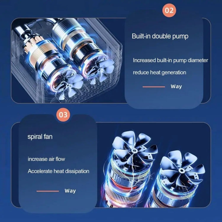 1. Brushless motor, powerful turbo airflow boosting technology, fast inflating speed
