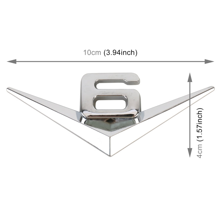 Car Number 6 Personalized Aluminum Alloy Decorative Stickers, Size:10x4x0.4cm (Silver)