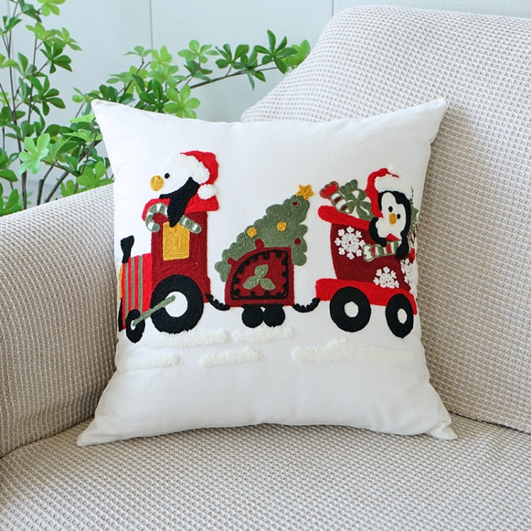 Christmas Embroidery Pillowcase Canvas Sofa Cushion Cover, Pillow Core Not Included, Style: 45x45cm Penguin Car