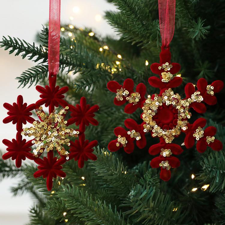 Christmas Tree Decorative Ornaments Flocked Wreath Reindeer Hanging Ornaments, Style: Snowflakes