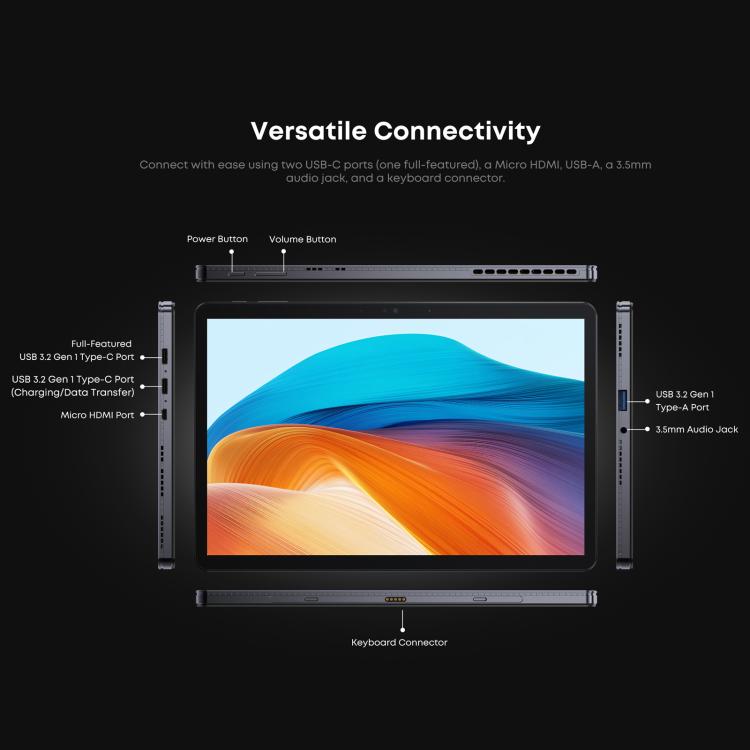 11. Interface: 1 x Full-featured Type-C, 1 x USB 2.0 Type-C (DC Charging), 1 x USB 3.2 Gen1, 1 x Micro HDMI, 1 x 3.5mm Audio Jack