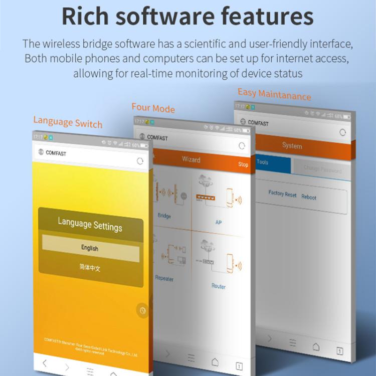 COMFAST CF-E112N V2 2.4GHz 300Mbps 9dBi Monitoring Bridge Set, Plug:UK Plug
