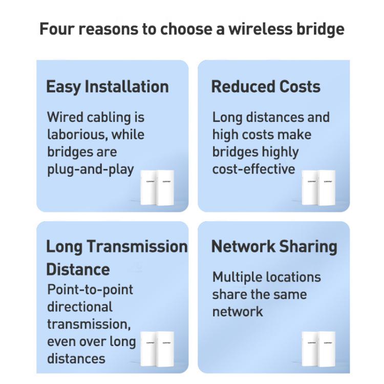 COMFAST CF-E113A V2 5.8GHz 300Mbps 11dBi Monitoring Bridge WiFi Repeater Set, Plug:EU Plug(White)