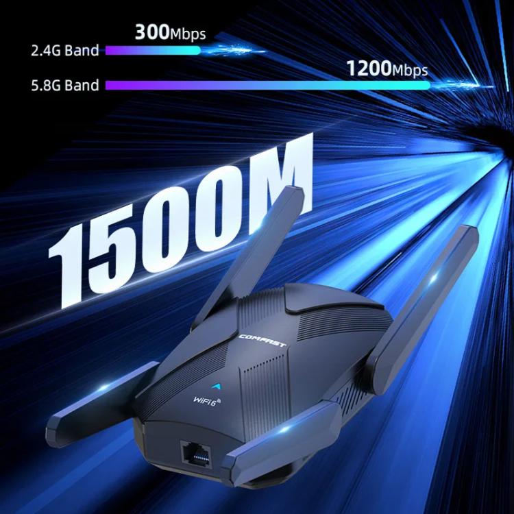 2. WiFi 6 Technology & 1500Mbps Speed: Supports the WiFi 6 standard, offering dual-band concurrent speeds up to 1500Mbps (300Mbps on 2.4GHz + 1200Mbps on 5.8GHz), effortlessly handling 4K streaming, gaming, and large file transfers.