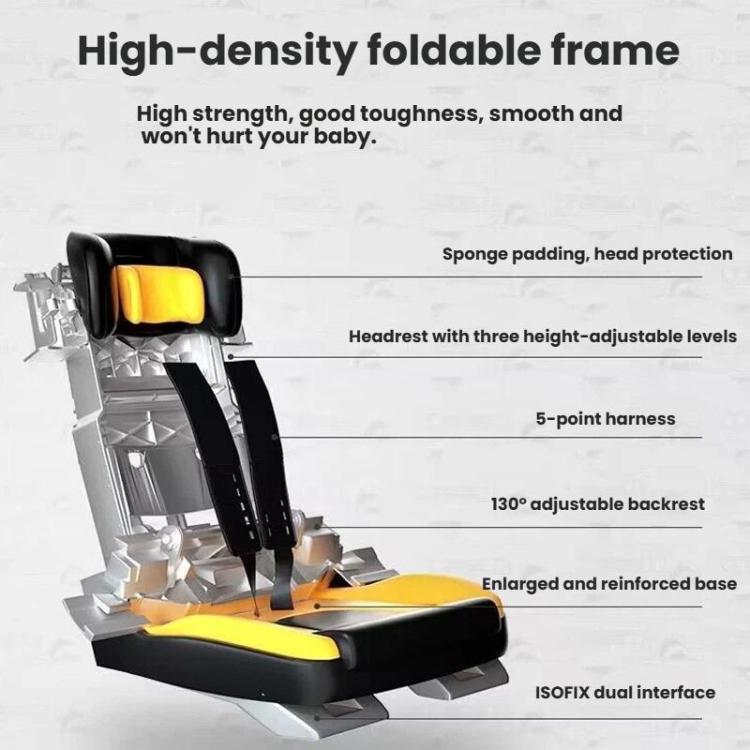 1. Child car seat with dual ISOFIX connectors and a five-point harness; quick installation in 3 seconds; evenly distributes impact force in a collision.