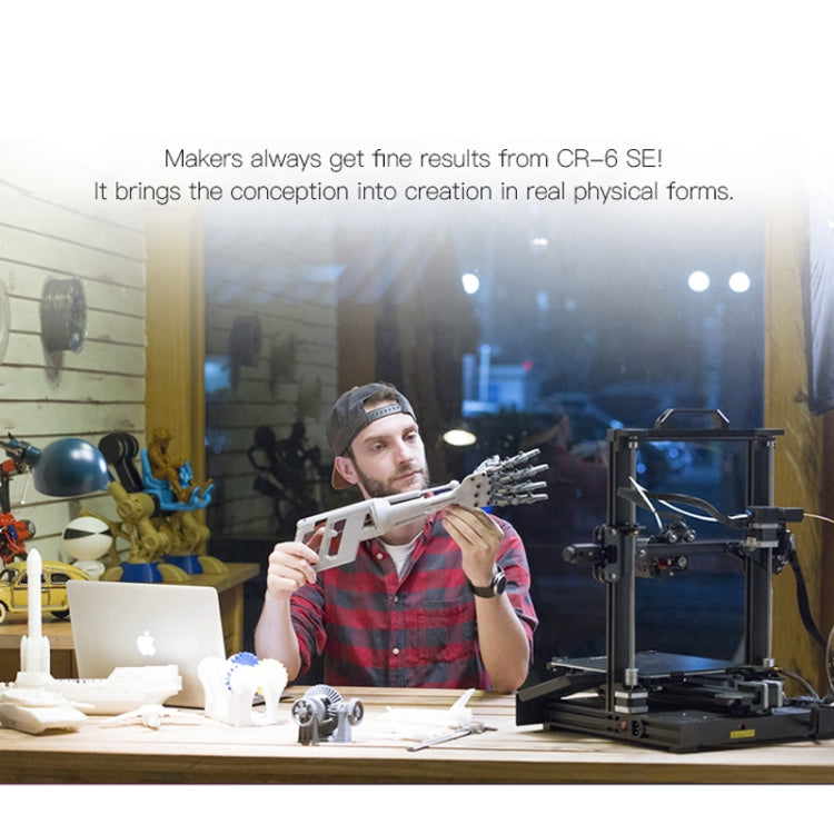 8. Strong stable and stylish. The CR-6 SE 3D printer work station has a beautiful design that compliments any desktop you use it on. Meanwhile, self-designed profiles and stepper motor cover prevent filament scraps and dust. The CR-6 SE also comes with a well-arranged ribbon cable that ensures safety issues are never a concern.
