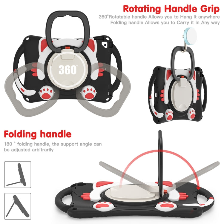 Cute Cat King Kids Shockproof Silicone Tablet Case with Holder & Shoulder Strap & Handle For iPad 10.2 2019 / 2020 / 2021 / Pro 10.5(Black Red)