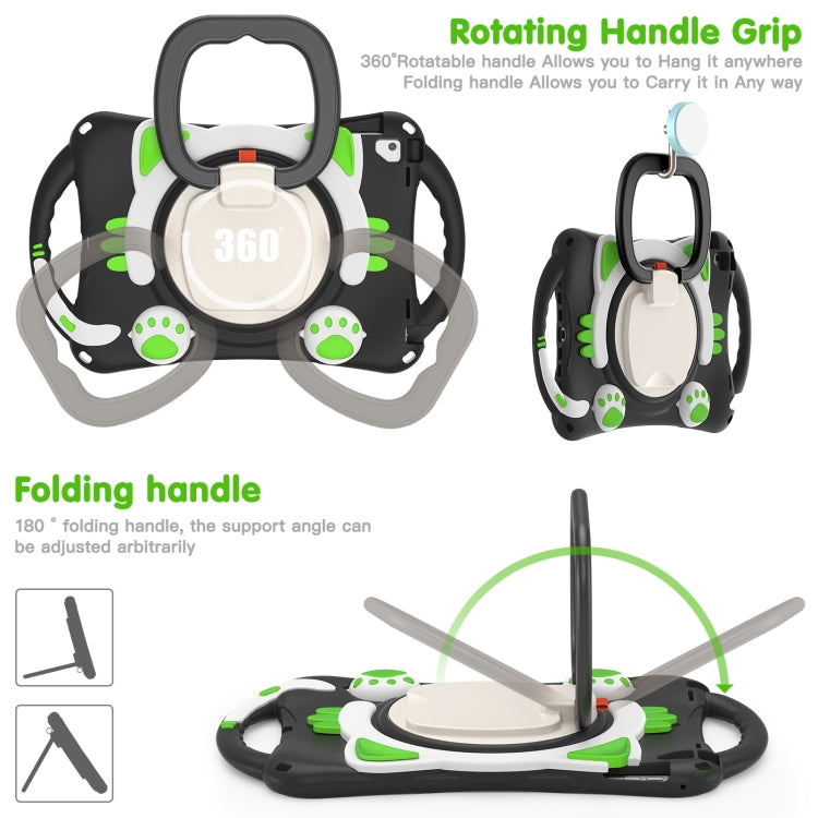 Cute Cat King Kids Shockproof Silicone Tablet Case with Holder & Shoulder Strap & Handle For iPad 9.7 2018 / 2017 / Air / Air 2 / Pro 9.7(Black Green)
