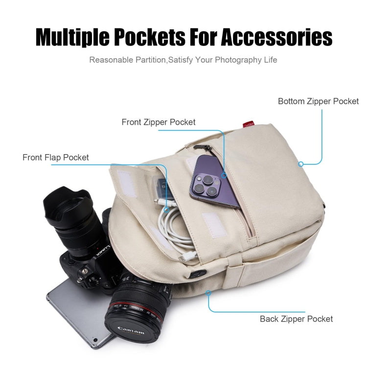 Cwatcun D93 Camera Bag Canvas Shoulder Bag, Size:21 x 14 x 30cm Beige