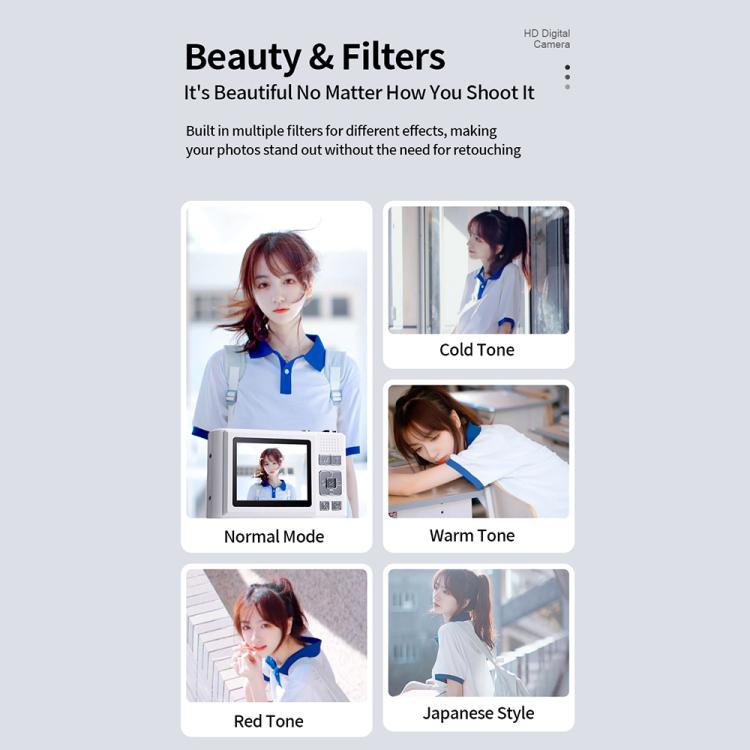 DC03H 2.4-Inch 16X Digital Zoom Electronic Image Stabilization 4K HD Digital Camera(White)