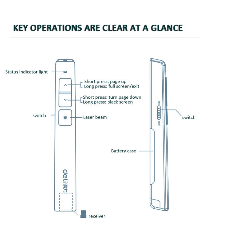 Deli 2.4GHz Page Turner USB Clicker With Red Light For PPT(Black)