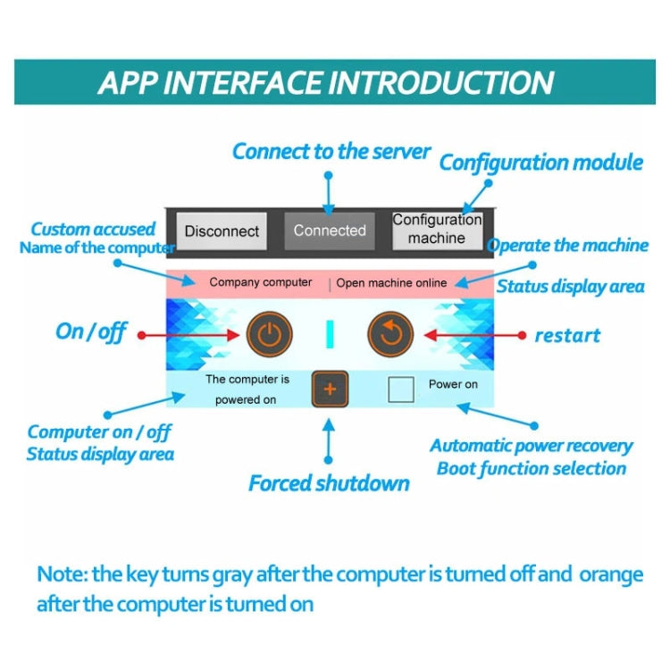 1. Function: to realize the remote power on, off, restart, forced shutdown, incoming calls automatically turn on the computer