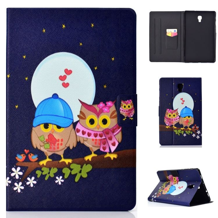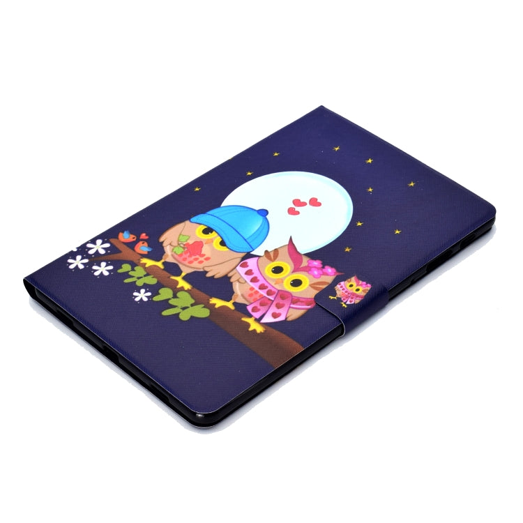 Electric Horizontal Flat Painted Leather Case with Pen Cover & Card Slot & Holder(Couple Owls)