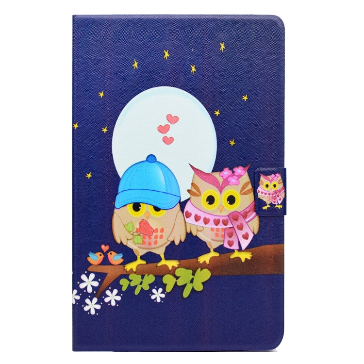 Electric Pressed Left Right Flat Feather Case with Sleep Function Pen Cover & Card Slot & Holder(Couple Owls)