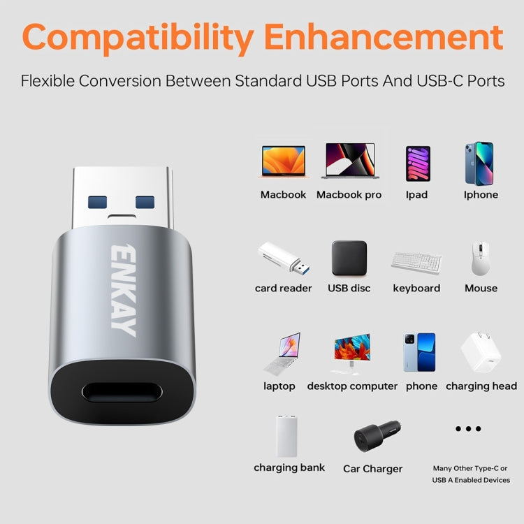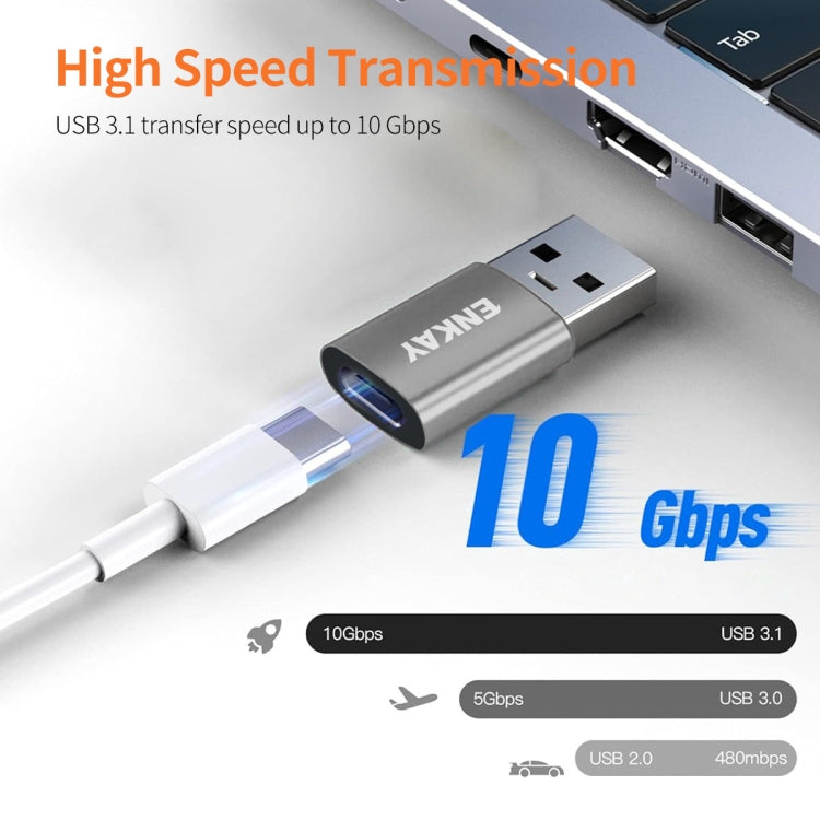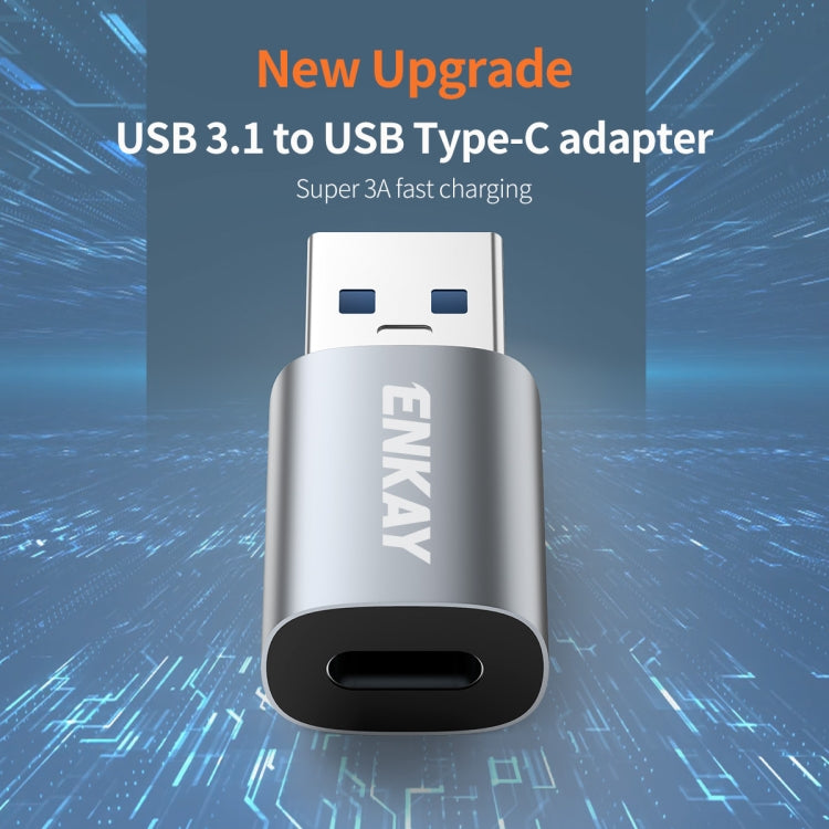 ENKAY ENK-AT118 Aluminium Alloy Male USB 3.1 to Female Type-C Data Adapter Converter Support Fast Charging