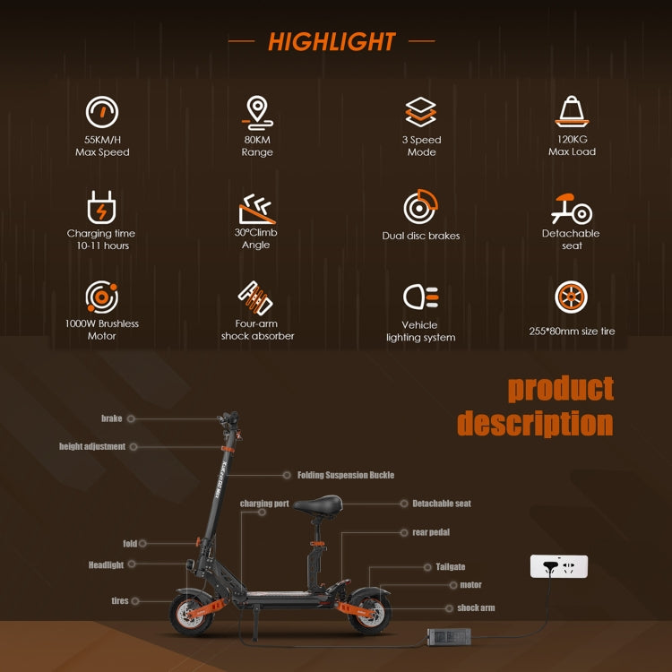 [EU Warehouse] Kukirin G2 Max 1000W 48V 20AH Three-speed Folding Electric Offroad Scooter with LED Display