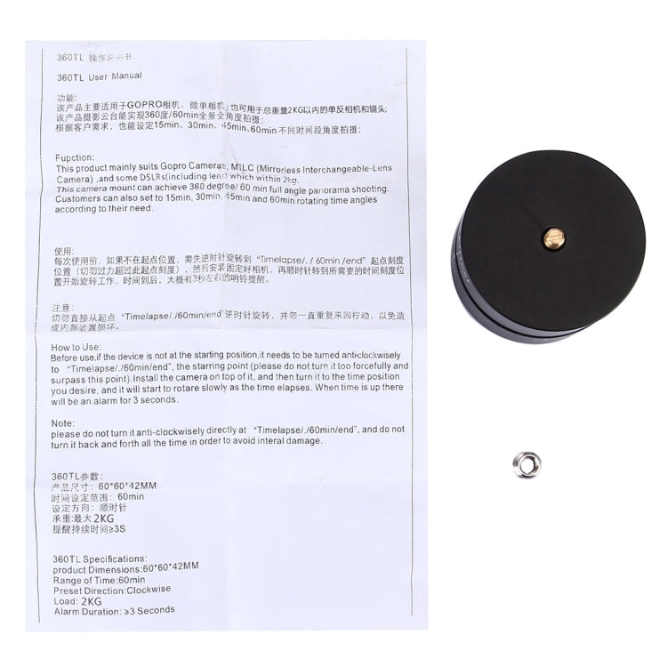 Fittest 360TL 360 Degrees Panning Rotating Panorama Cylindrical PTZ 60min / 45min / 30min / 15min Time Lapse Stabilizer Tripod Adapter with 2kg Bearing for for GoPro HERO9 Black / HERO8 Black /7 /6 / ... Other Action Cameras & Micro Single & DSLR Camera