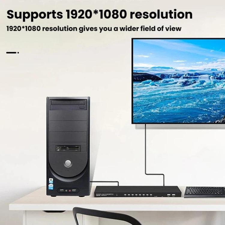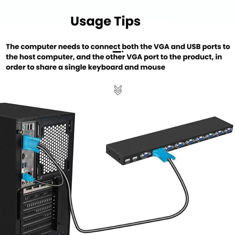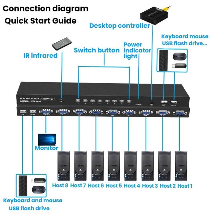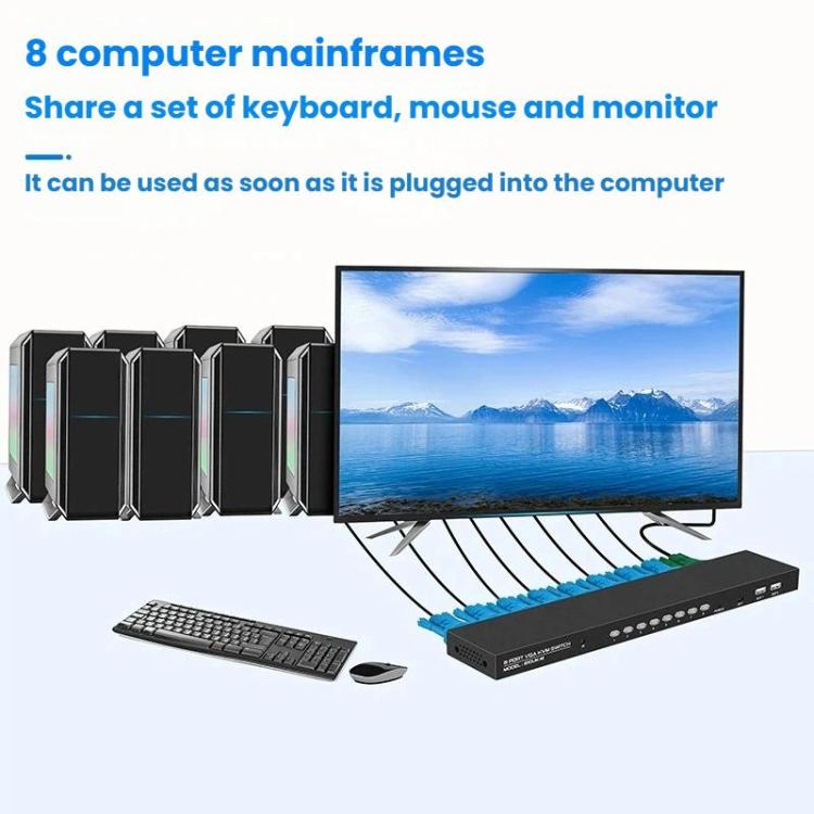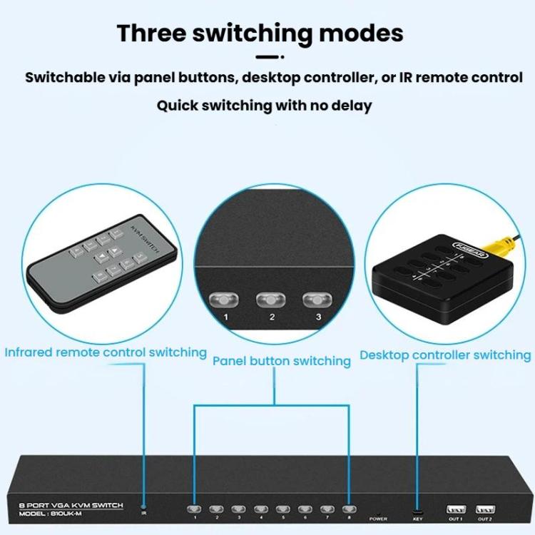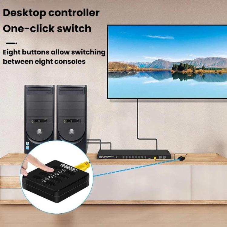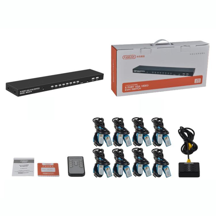 FJGEAR 810UK-M 8 Input 1 Output VGA KVM Converter Multiple Computer Hosts Sharing Monitor Switcher With IR Remote Controller