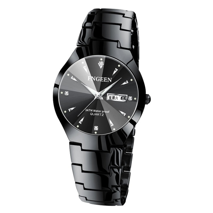 FNGEEN 5808 Men Fashion Steel Strap Quartz Watch Couple Watch(Black Steel Black Surface)