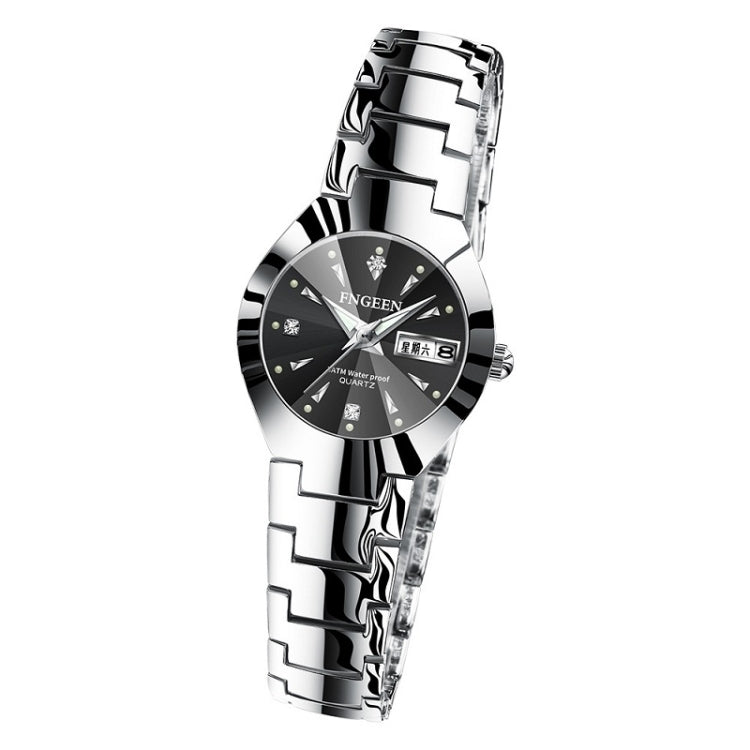 FNGEEN 5808 Women Fashion Steel Strap Quartz Watch Couple Watch(White Steel Black Surface)