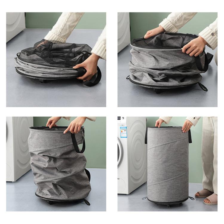 Foldable Rolling Laundry Hamper with Wheels & Straps Large Capacity Collapsible Clothes Basket(Gray)
