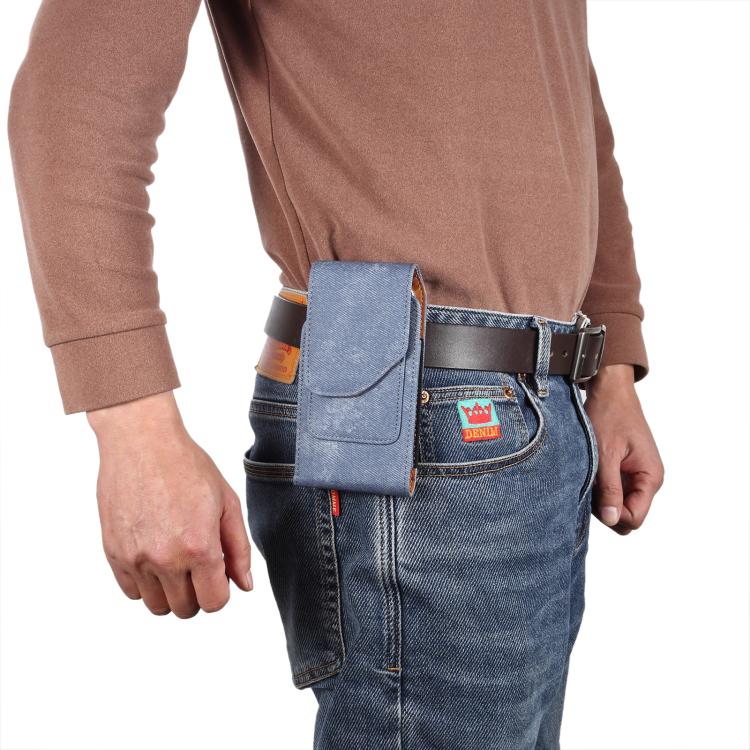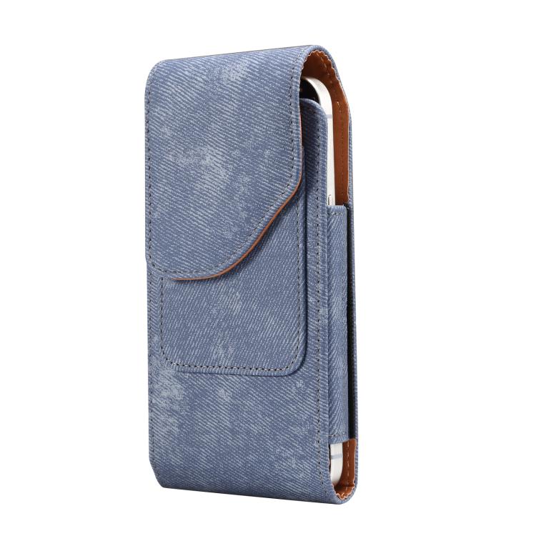 For 6.2-6.5 inch Vertical Style Denim Texture Wear-resistant Card Slot Waist Bag Leather Phone Case(Blue)