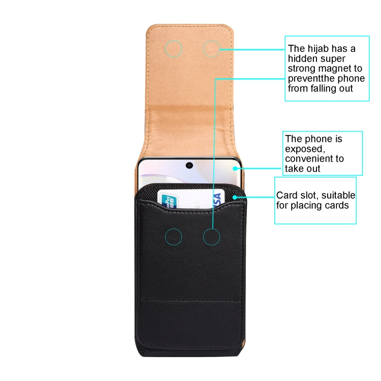 For 6.7-6.9 inch Vertical Style Lamb Texture Wear-resistant Card Slot Waist Bag Leather Phone Case(Black)