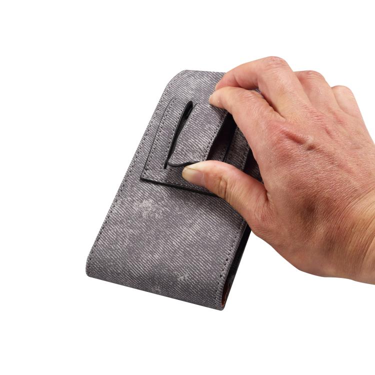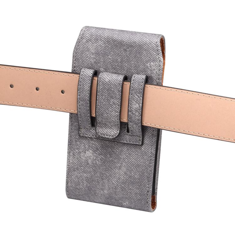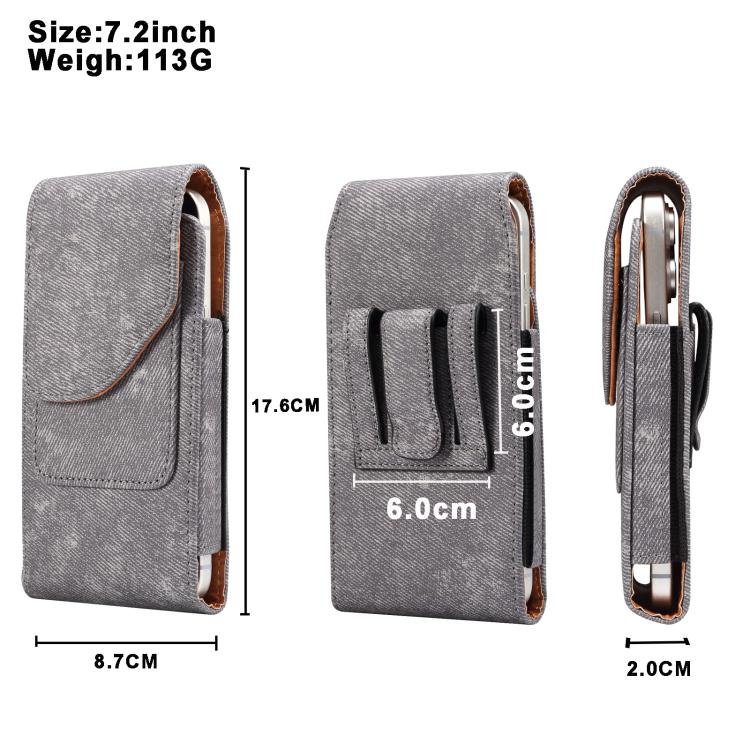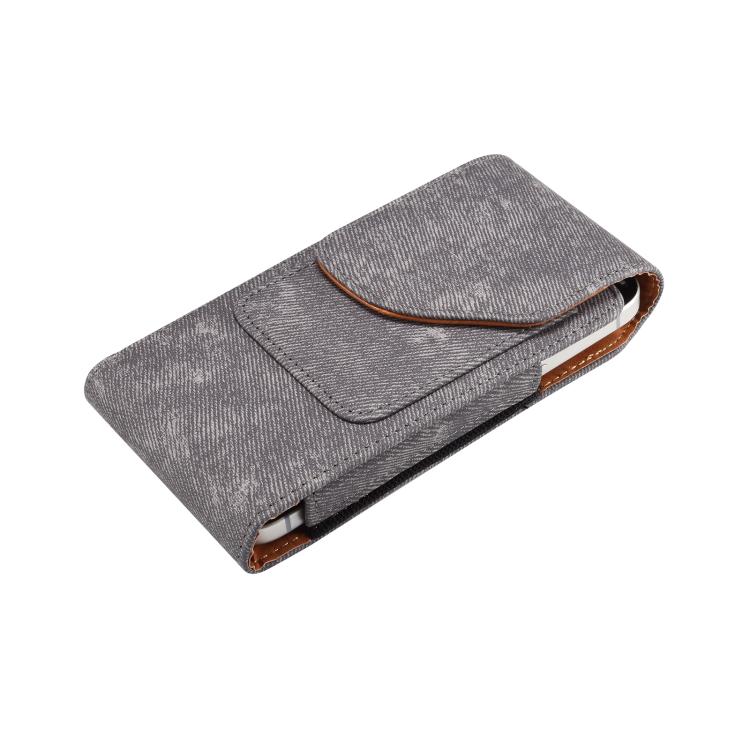 For 7.2 inch Vertical Style Denim Texture Wear-resistant Card Slot Waist Bag Leather Phone Case(Gray)