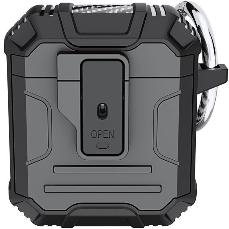 For AirPods 1 / 2 Non-slip TPU+PC Shockproof Earphones Case with Hook(Black)