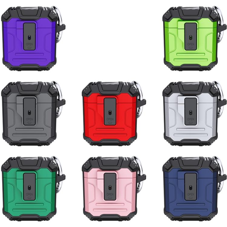 For AirPods 1 / 2 Non-slip TPU+PC Shockproof Earphones Case with Hook(Pink)