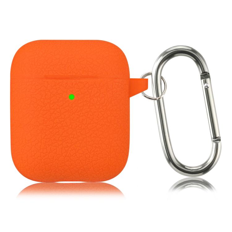 For AirPods 1 / 2 Simple Solid Color Litchi Texture Silicone Earphone Protective Case with Hook(Hermes Orange)