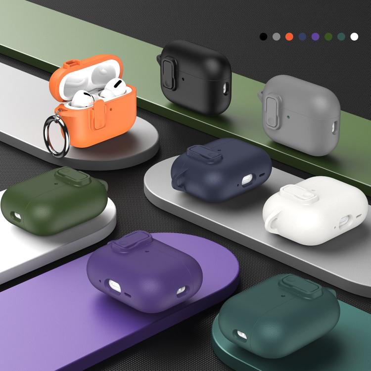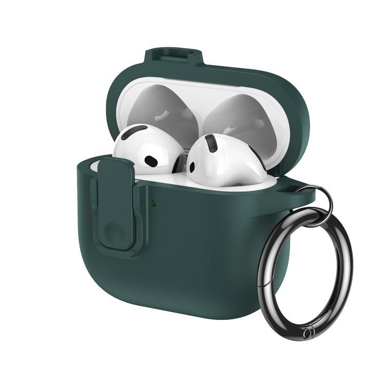 For AirPods 4 Grained Leather Look TPU Earphone Cover with Ring Hook(Mountain Green)