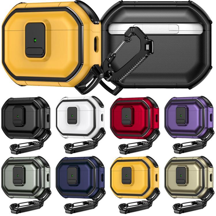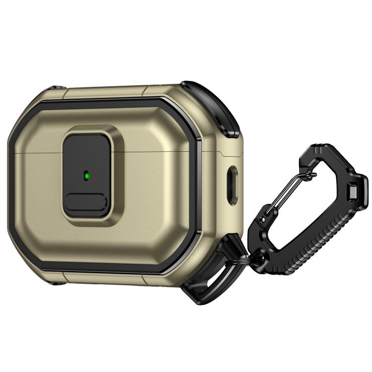 For AirPods Pro 3 Snap-Lock Shockproof PC Headphone Cover with Carabiner(Gold)
