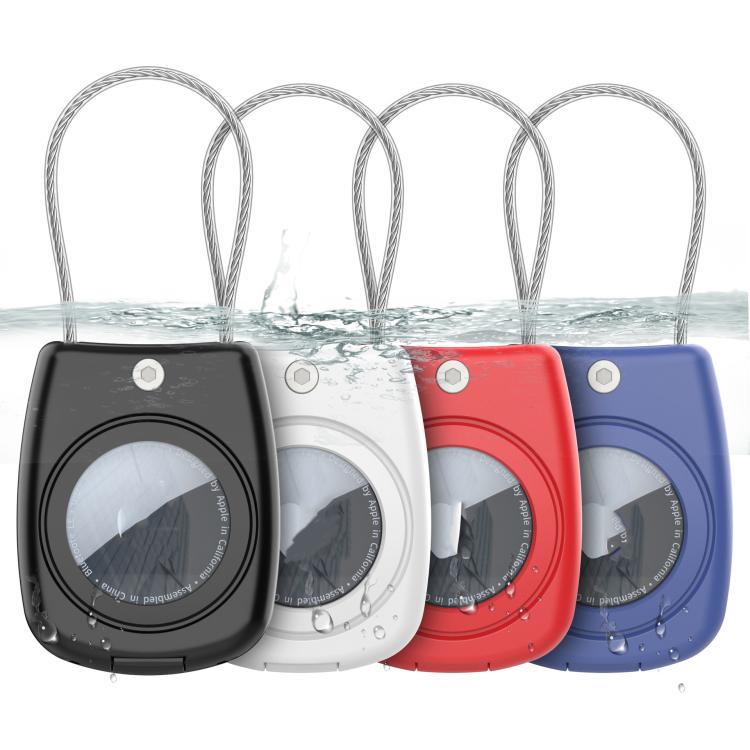For AirTag Protective Case with Stainless Steel Rope Safety Lock Protective Shell(Black)