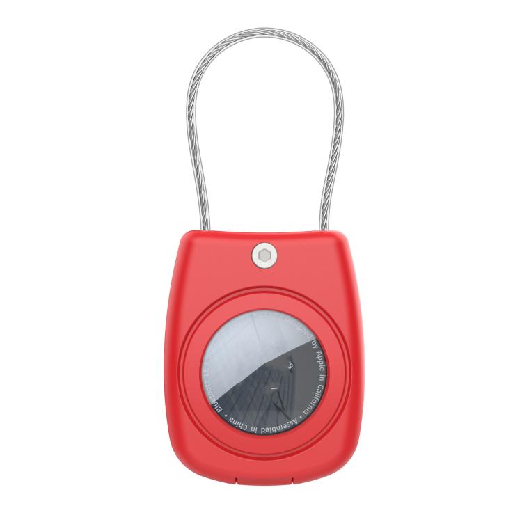 For AirTag Protective Case with Stainless Steel Rope Safety Lock Protective Shell(Red)