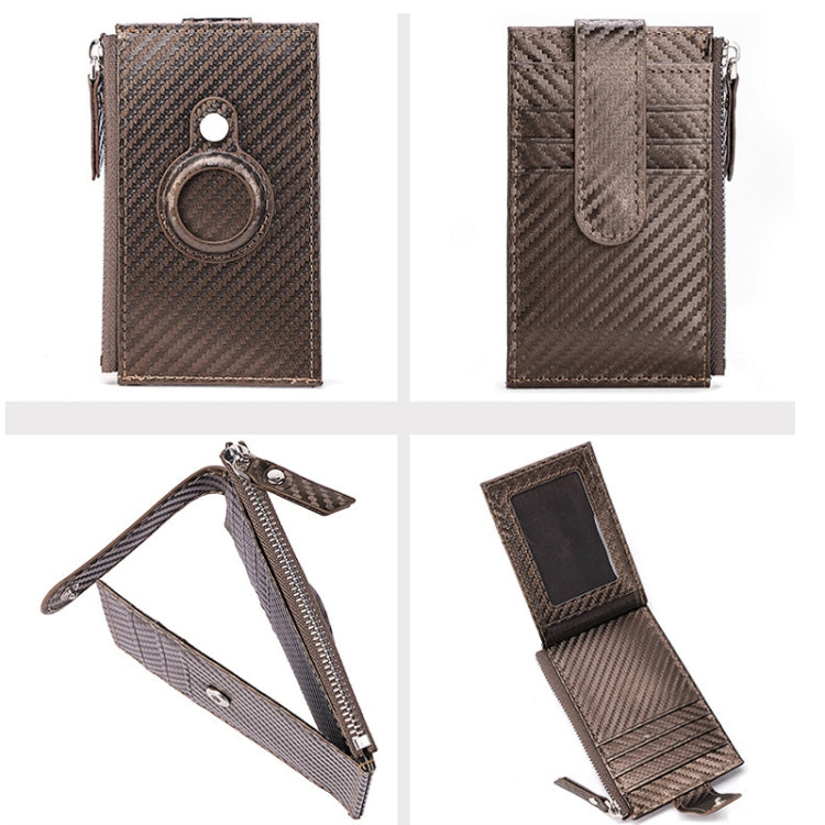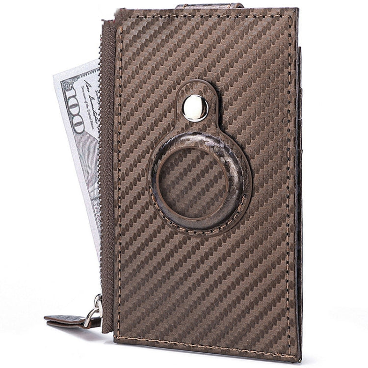 For Airtag Tracker Case Carbon Fiber Credit Card Holder Wallet(Coffee)