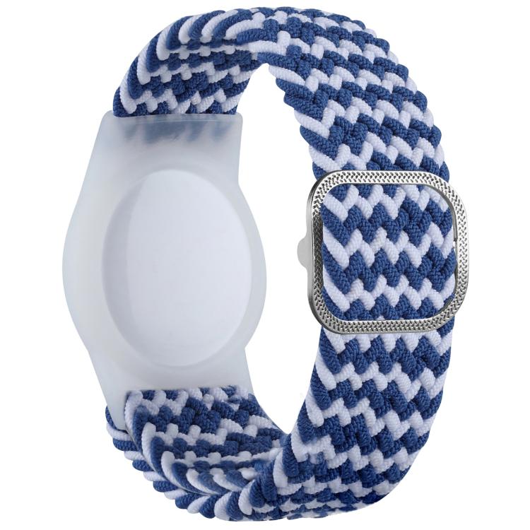 For AirTag xDfind Adjustable Nylon Braided Watch Band Style Anti-lost Tracker Protective Cover(Blue White)