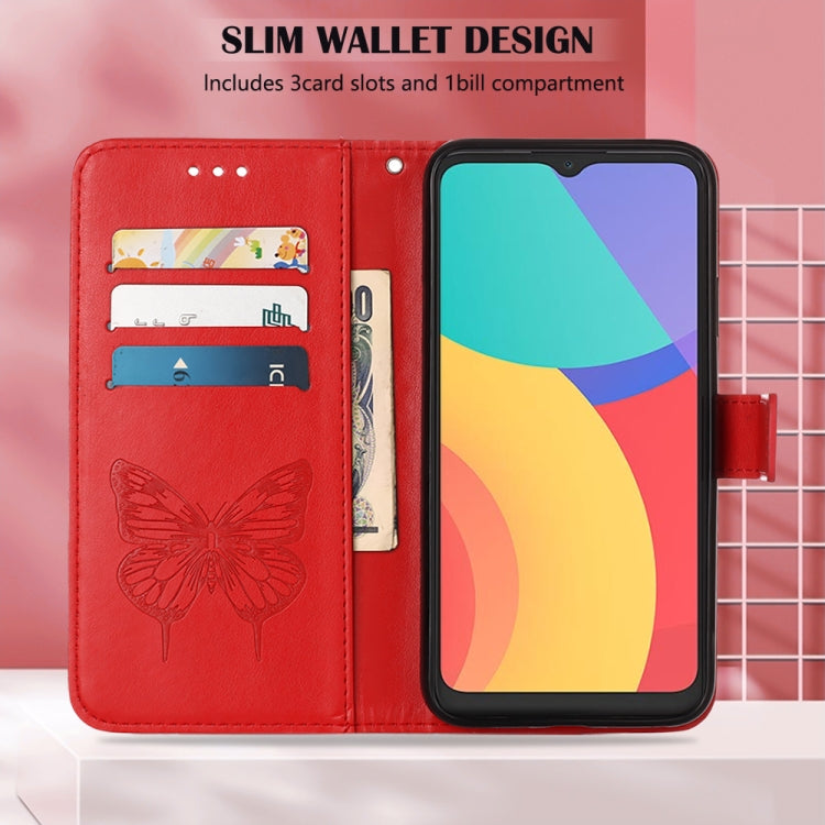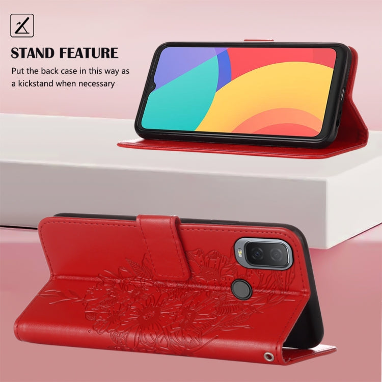 For Alcatel 1L 2021 Embossed Butterfly Leather Phone Case(Red)