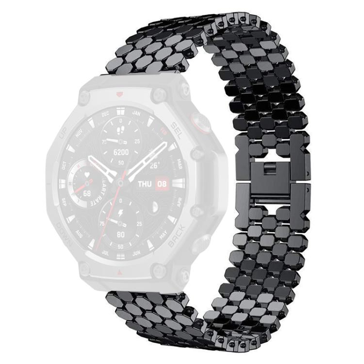 For Amazfit T-Rex 3 xDfind Fish Scale Texture Metal Watch Band(Black)