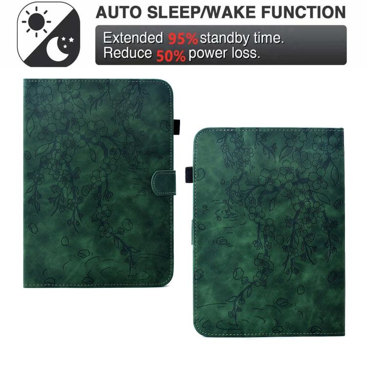 For Amazon Kindle Paperwhite 6 / 12th Plum Blossom Embossed Smart Leather Tablet Case(Green)