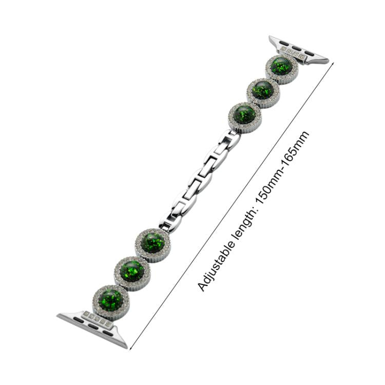 For Apple Watch 42 / 44 / 45 / 46 / 49mm xDfind Sparkling Diamond Jewelry Metal Watch Band(Silver Green Diamond)