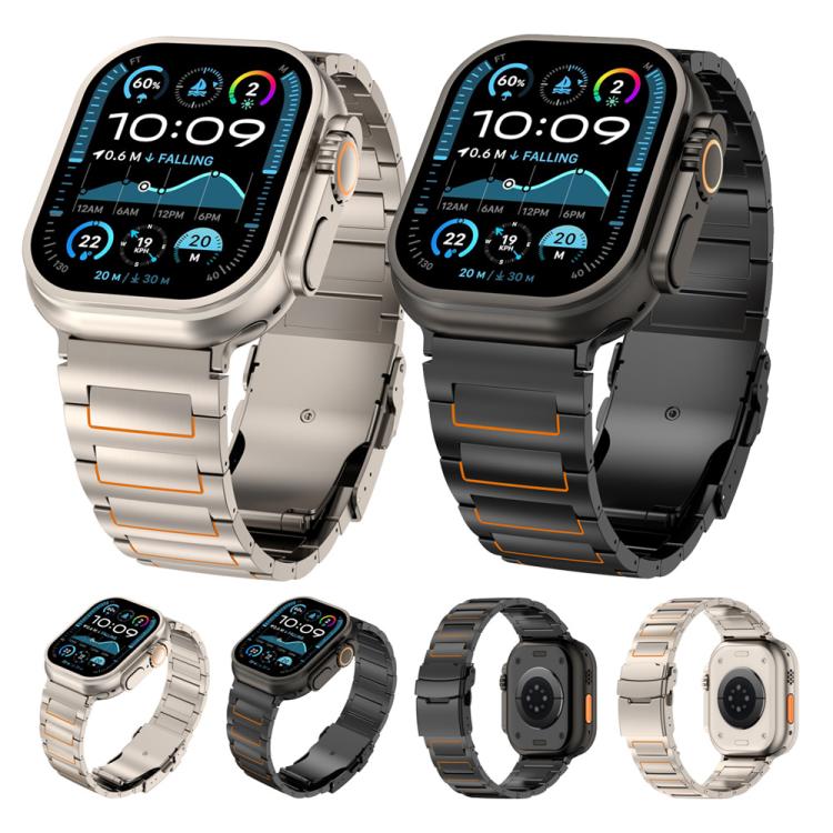 For Apple Watch 42mm / 41mm / 40mm / 38mm I-shaped Safety Clasp Titanium Alloy Watch Band(Black Orange)