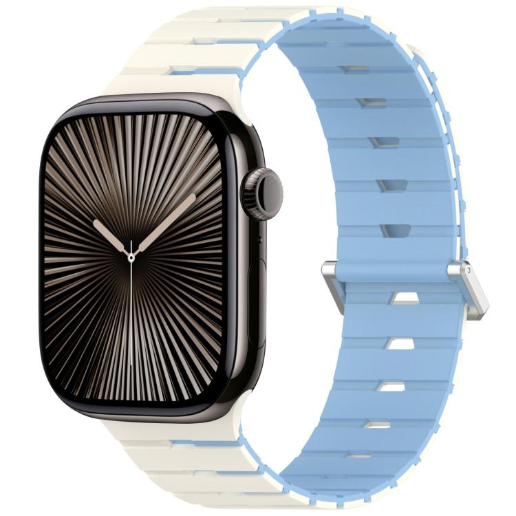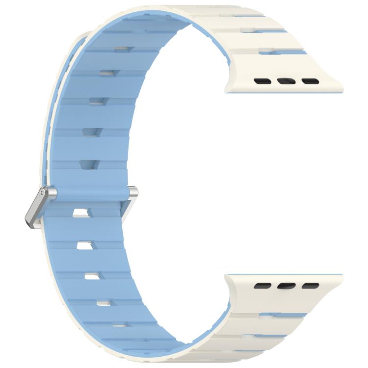 For Apple Watch 42mm / 41mm / 40mm / 38mm Melodica-Style Magnetic Dual-Color Silicone Watch Band(Antique White Mist Blue)