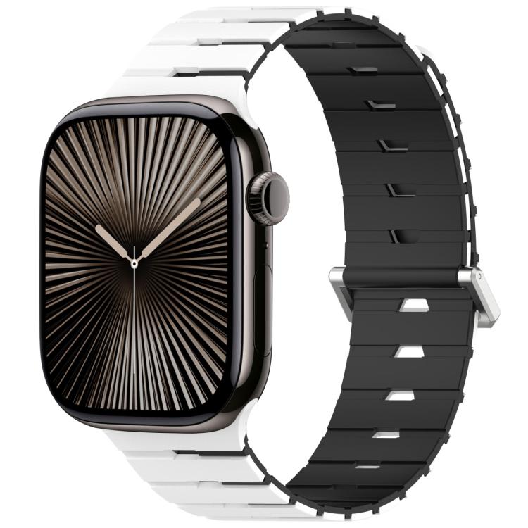 For Apple Watch 42mm / 41mm / 40mm / 38mm Melodica-Style Magnetic Dual-Color Silicone Watch Band(White Black)